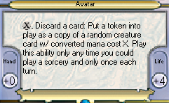 After playing this format a little, we've changed the rules a little to make the games more interesting. Instead of being an activated ability, we play so that you can play any card in your hand as a creature spell, and the card permanently becomes a random creature spell as it goes on the stack. That way, Phage doesn't kill you, sunburst is relevant, and creatures can return to your hand or from the graveyard (e.g., Ashen Ghoul works). On the other hand, Azorius Guildmage, Dogged Hunter, and Desecration Elemental are not the huge bombs that they are online. We're also experimenting with removing the "once per turn" restriction... doesn't seem to cause any huge problems so far.